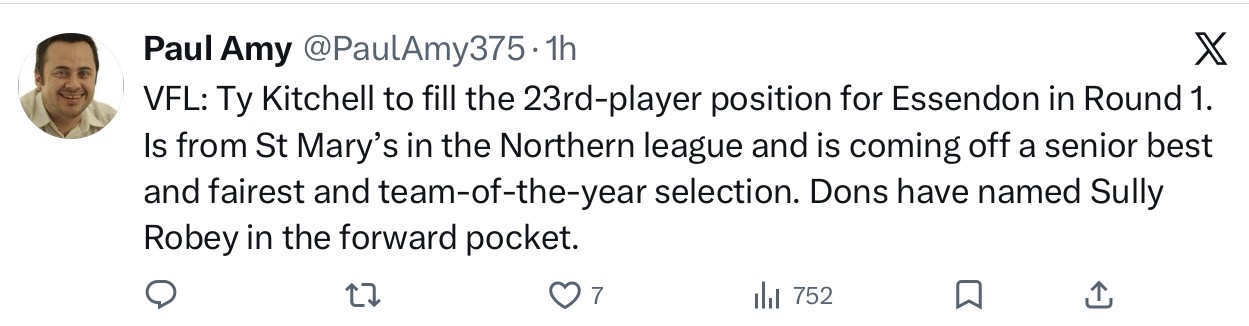 El hawli the only player named in both senior and VFL teams so likely he’s not been selected for seniors.