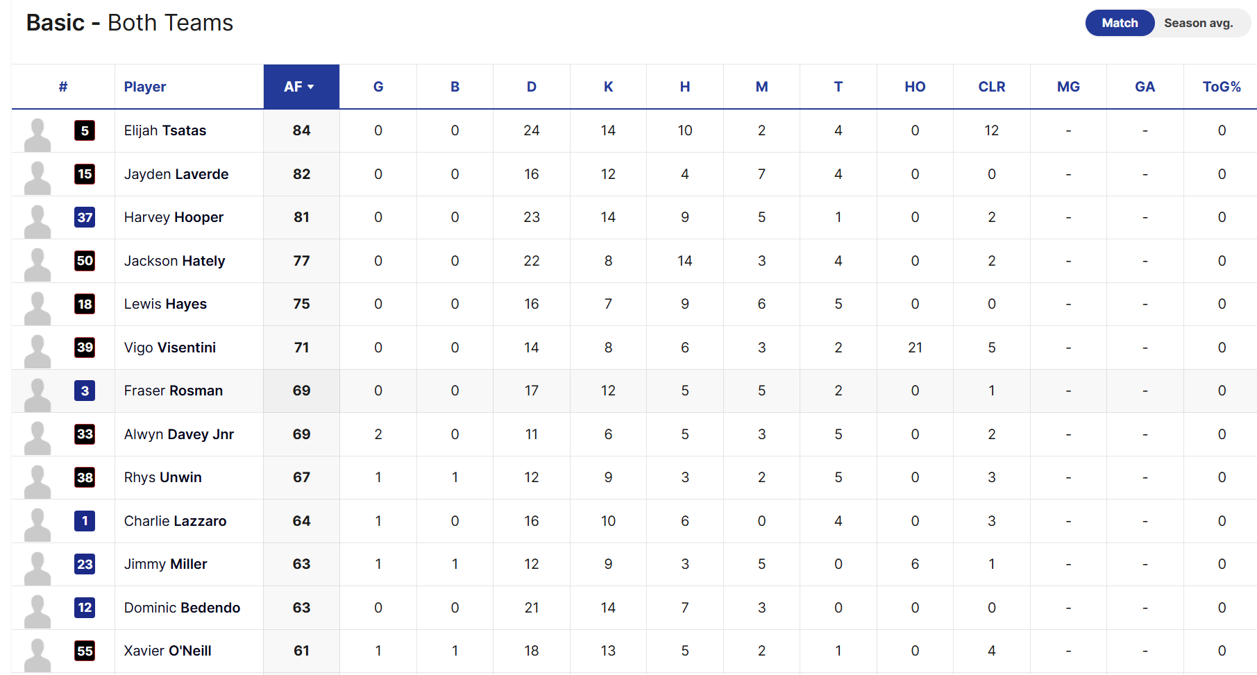 Tsatas dominating at stoppages - #1 ranked player on the ground a massive 12 clearances already.
