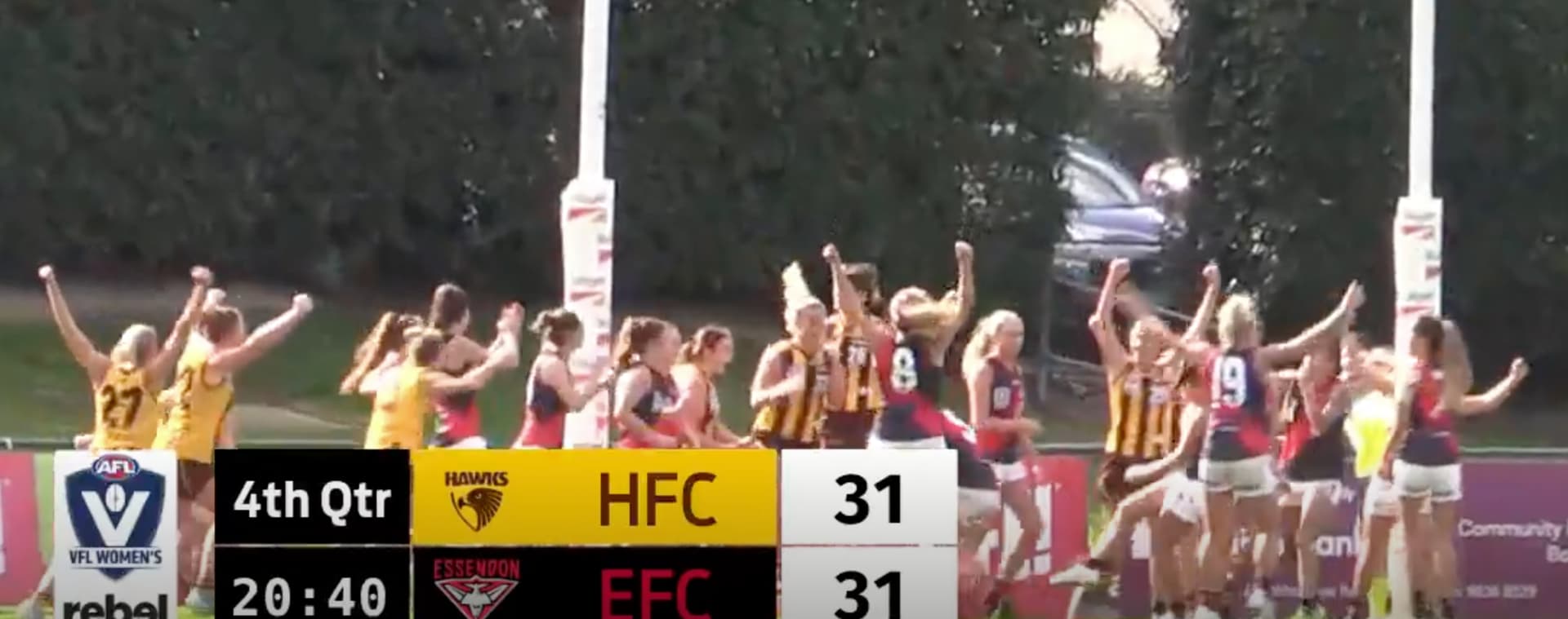 The VFLW Hawks remain undefeated from 10 games after securing a thrilling draw in their top-of-the-table clash with Essendon on Sunday.
