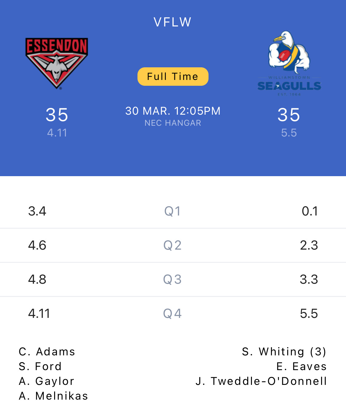 1-30 now. Ten times as many scoring shots. And they don’t have Cherie O’Neill to overtly curse their accuracy.