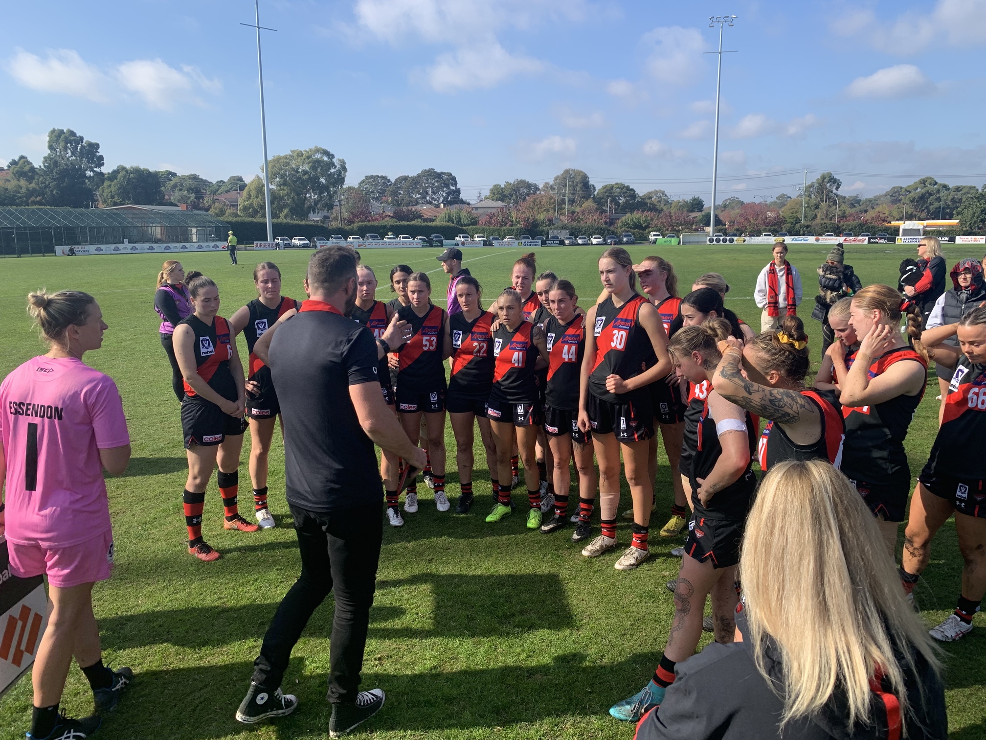 Mama Pearson (?) with advice for her daughter at the bench.