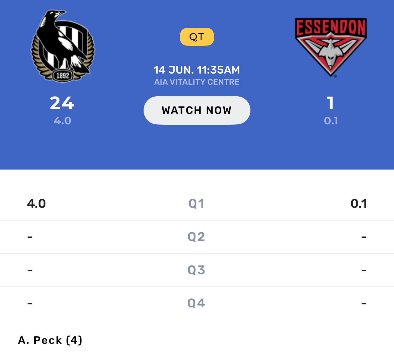 Plummer burst through intercept, long to Tia, low to Richo at the top of the goal square, side step, GOAL.