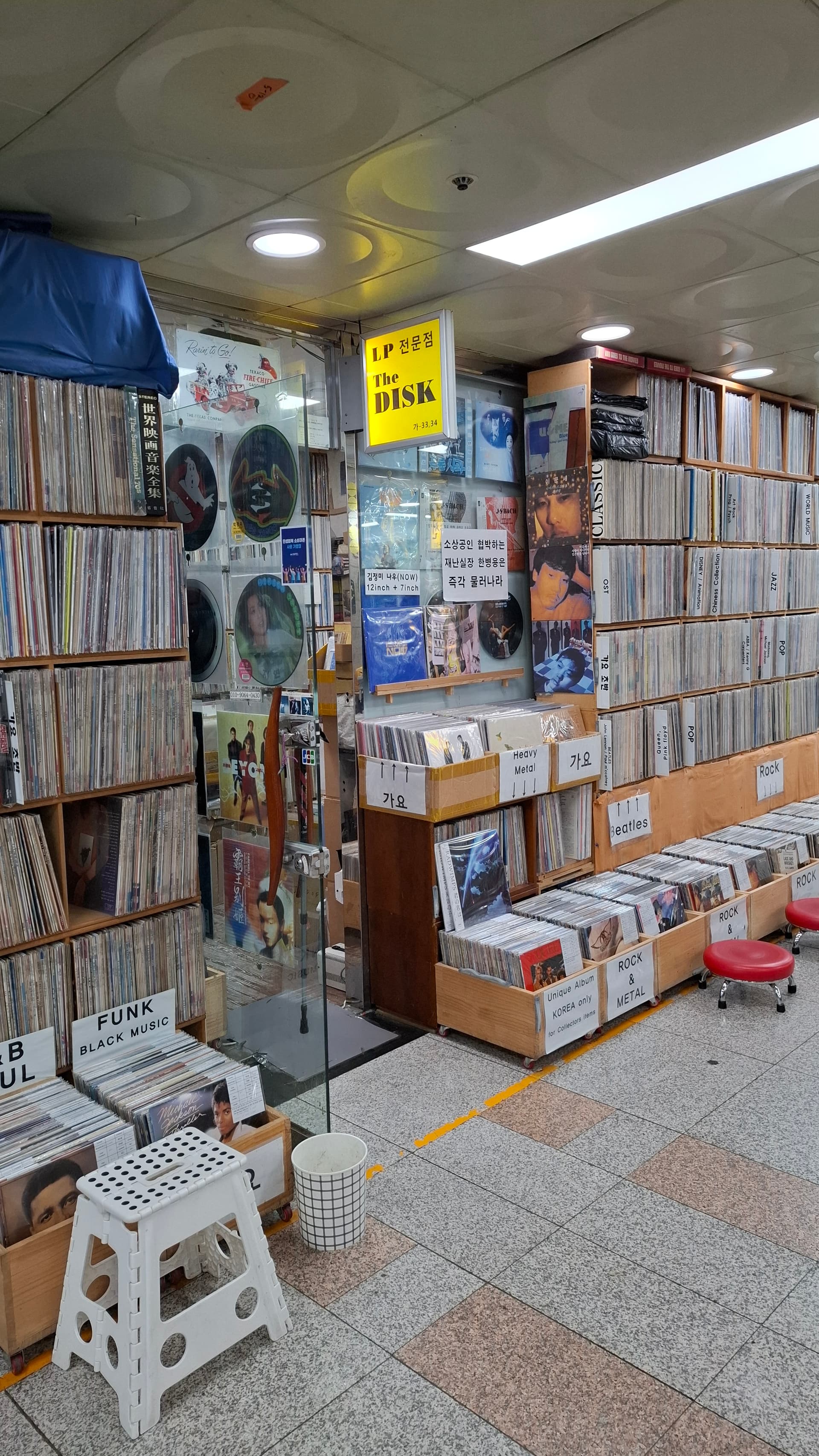 Sometimes you find things in unexpected spots. In an underground mall, in Seoul. A couple of aisles of vinyl shops. Western music… not K-Pop. New and used. Well organised.