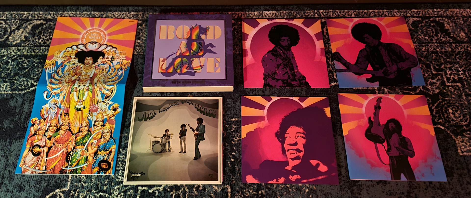 A five record set contains a newly remastered copy of Axis Bold as Love in stereo and one in mono done by Bernie Grundman, two records full of studio outtakes (which at least 85% of which is all unreleased) a record of a live gig from Stockholm 67 thats been out of print since the 80s plus a handfull of other live tracks.