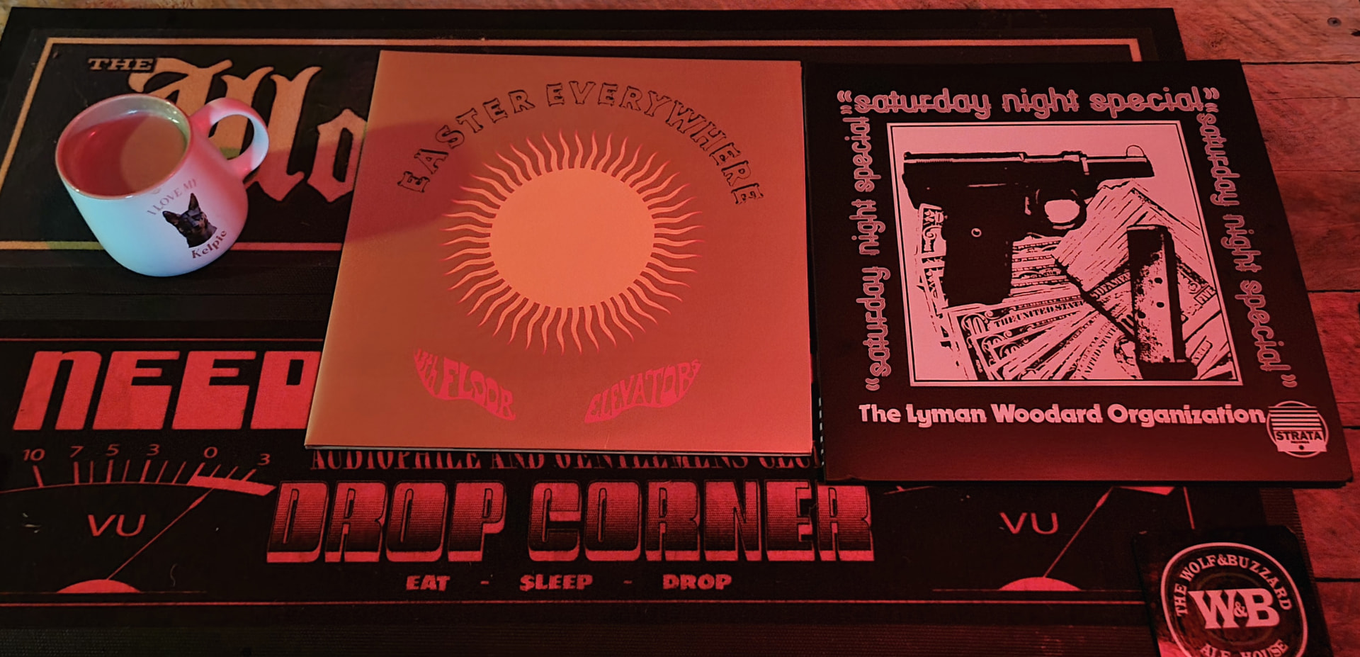 The classic 1975 Strata East label release Saturday Night Special by The Lyman Woodard Organization and a beautiful double set of 13th Floor Elevators 1967 classic Easter Everywhere with a stereo and mono version. The mono is the star here. Very muscular.