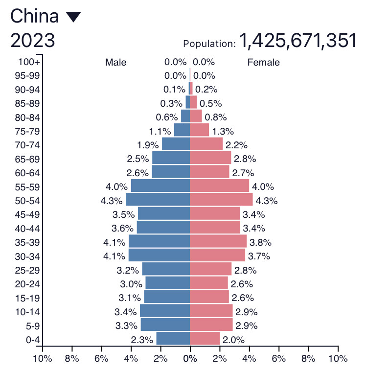 That population demographic stuff is fascinating. I’ve watched a few of those Peter Zeihan analyses and it’s pretty doom and gloom stuff for the Chinese economy. Will be very interesting to see how it actually plays out and how India’s rise will affect the balance as well.