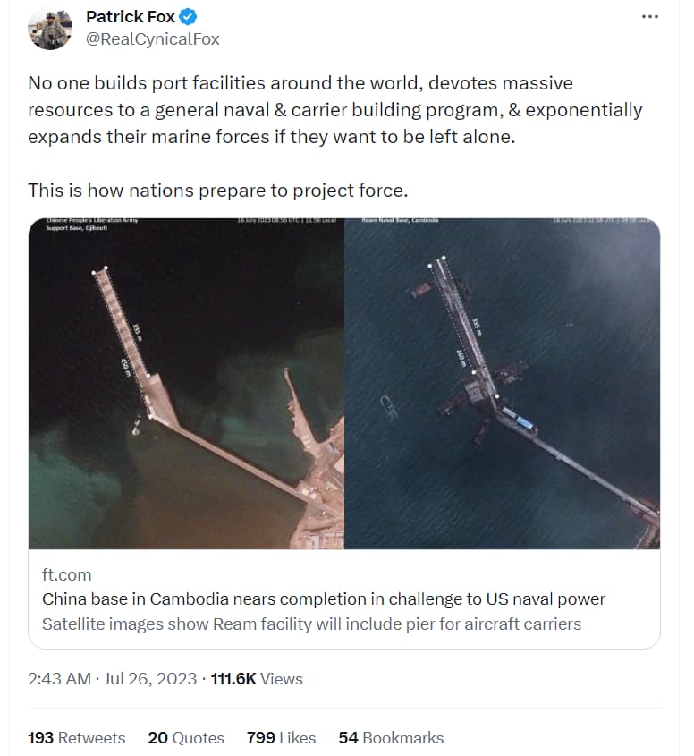 Chinese base in Cambodia nears completion in challenge to US naval power | Financial Times https://archive.li/16ExN