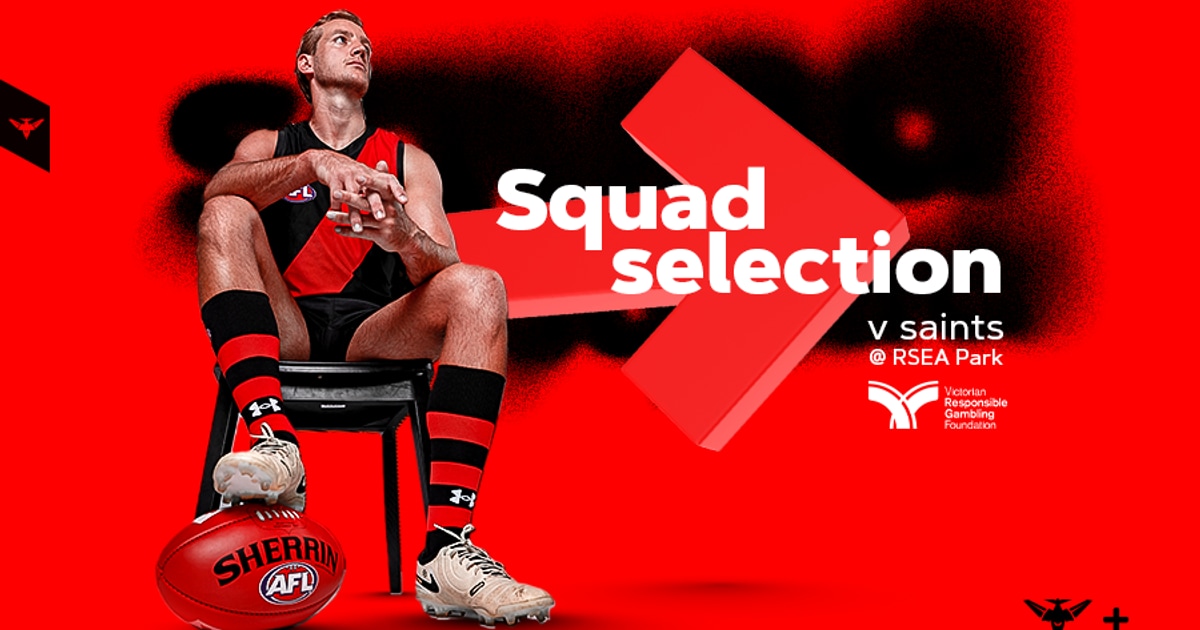 See Essendon's selected squad to face the Saints.
